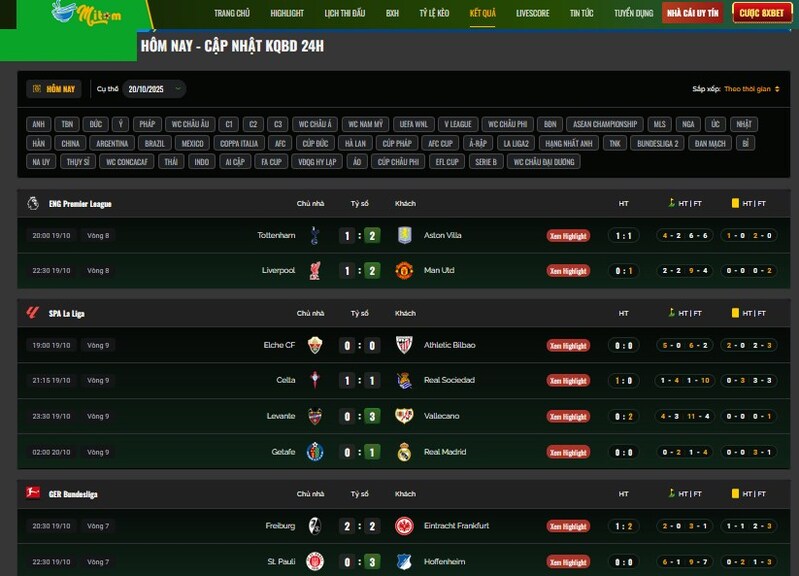 Kết quả bóng đá hôm nay trên Mitom TV cập nhật nhanh, chính xác và đầy đủ thông số